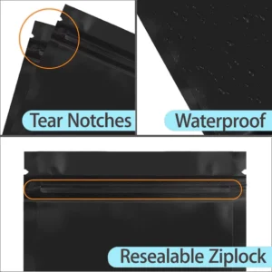 3.5g Matte Black Mylar Bags – Smell Proof Aluminum Foil Pouches, Double-Sided Flat Resealable & Heat-Sealable Bags