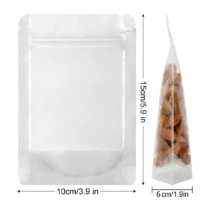 Be the first to review “Custom Printed Clear Stand-Up Pouches – Food-Grade Transparent Plastic Packaging Bags with Resealable Zipper & Bottom Gusset”